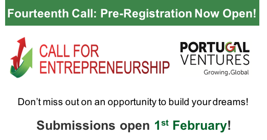 O Pré-registo da Décima Quarta Call For Entrepreneurship já está aberto. As candidaturas de projetos podem ser apresentadas a partir de 1 de Fevereiro. Saiba mais em www.portugalventures.pt. “