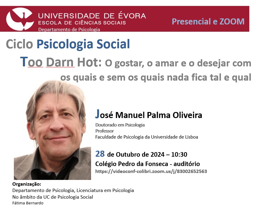 Orador: José Manuel Palma Olveira, Doutorado em Psicologia, Professor na Faculdade de Psicologia da Universidade de Lisboa